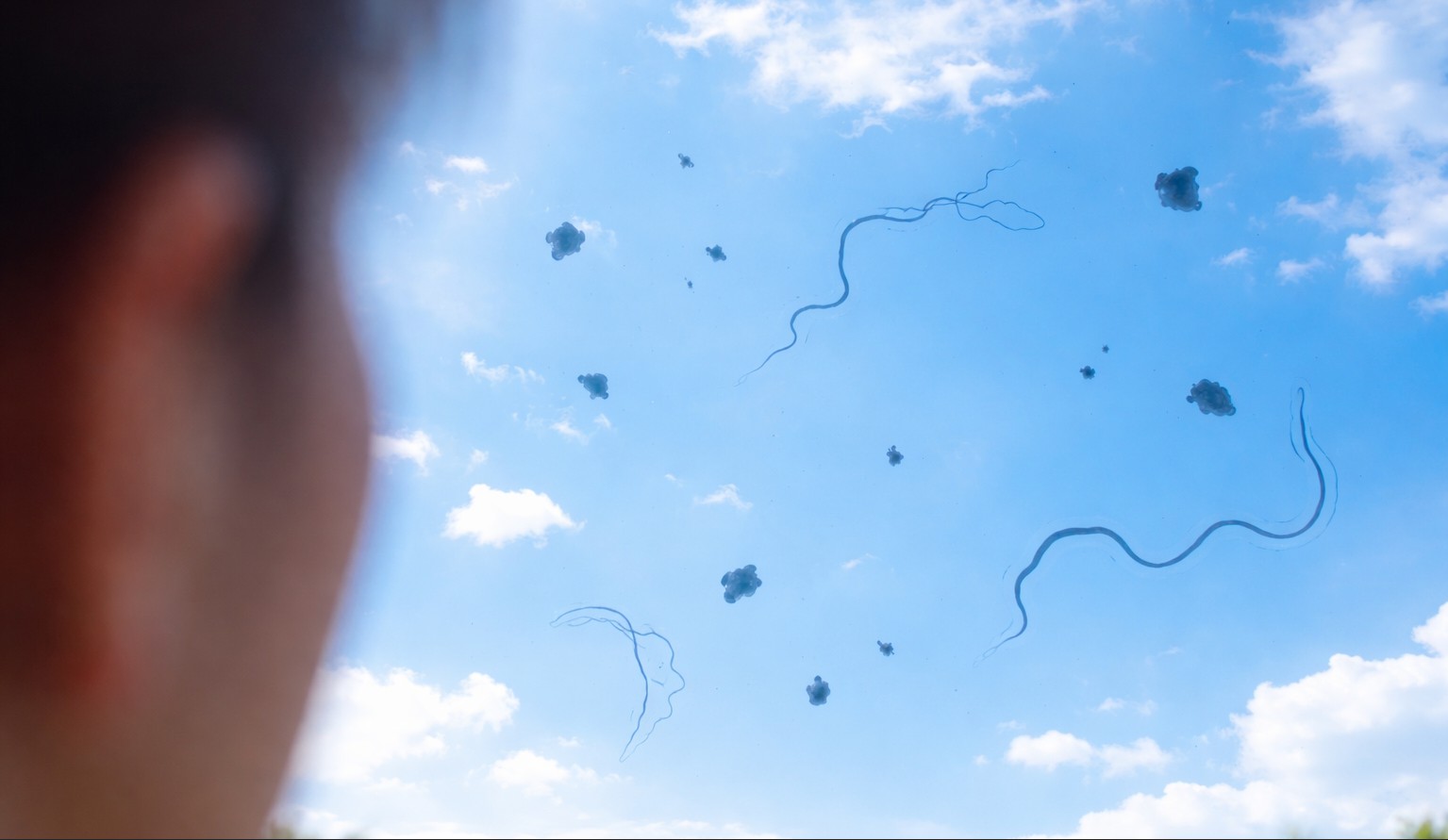 가장 흔한 원인은 유리체 액화입니다. 나이가 들면 유리체는 점점 물처럼 묽어지고, 내부 구조가 분리되며 작은 덩어리들이 생깁니다. 이 덩어리들이 떠다니면서 비문증이 나타납니다. 특히 밝은 하늘이나 흰 벽을 볼 때 더 잘 보이는 이유는, 배경이 밝을수록 유리체 혼탁의 그림자가 더 선명해지기 때문입니다.